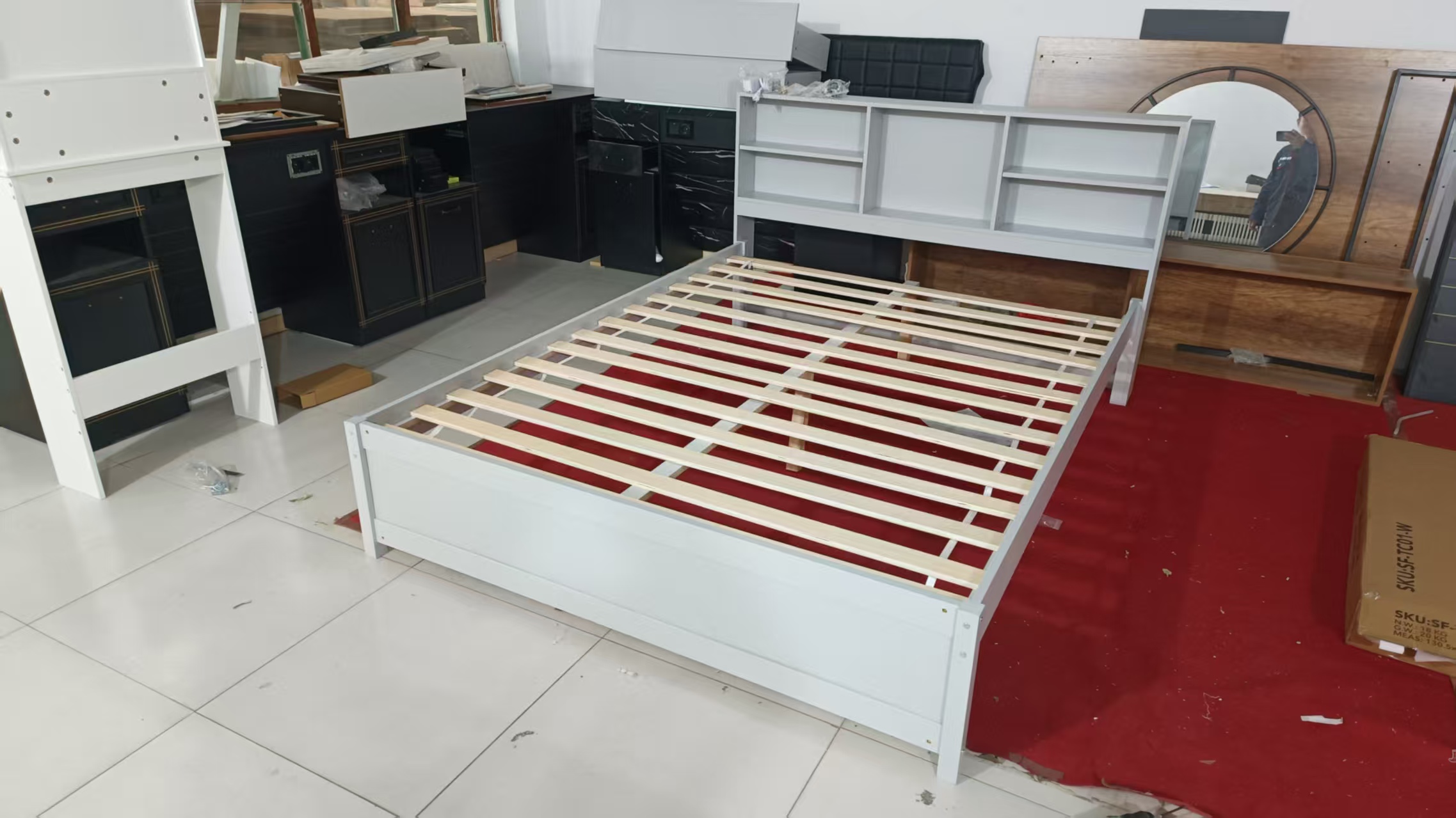 This storage platform bed is simple and fashionable. The headboard features 5 shelves, offering you convenient storage space for daily necessities. The whole construction is made of solid wood and MDF, so it's designed for long-term use.